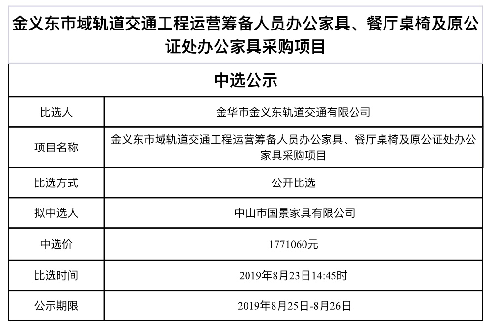 金華市軌道交通控股集團物業(yè)管理服務(wù)有限公司2025-2026年度勞務(wù)派遣人員工作服采購項目中標(biāo)候選人公示