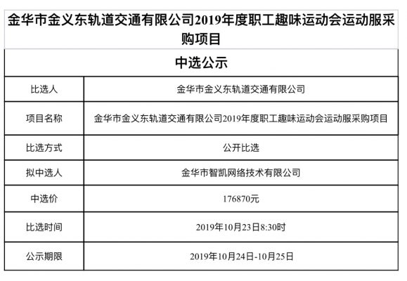 金華市軌道交通控股集團物業(yè)管理服務有限公司2025-2026年度勞務派遣人員工作服采購項目中標候選人公示