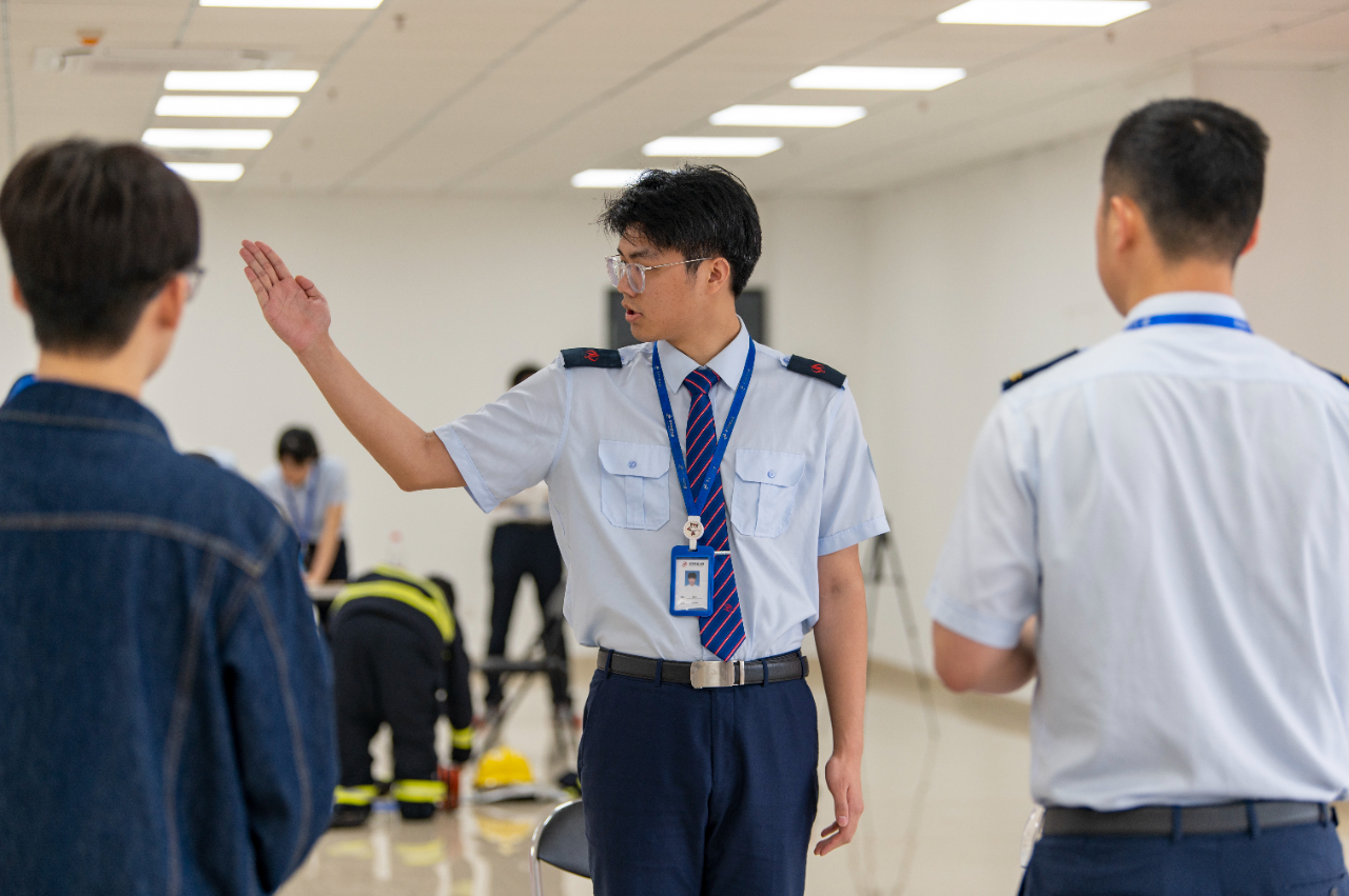 6月11日,在浙江省金華市金義東市域軌道交通工程塘雅車輛段,青年職工選手在參加軌道交通應(yīng)急處置項(xiàng)目技能比武。