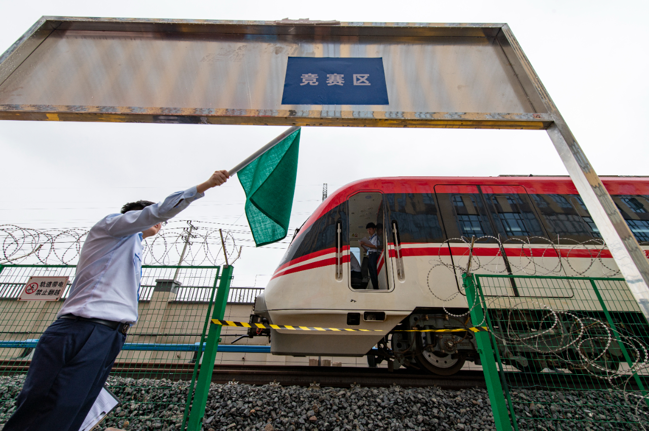 6月11日,在浙江省金華市金義東市域軌道交通工程塘雅車輛段,青年職工選手在參加軌道交通手動駕駛項(xiàng)目技能比武。