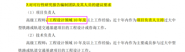 五、問:招標(biāo)文件中P12頁: 7.對可行性研究報(bào)告編制團(tuán)隊(duì)及其人員的建議要求: (1)項(xiàng)目負(fù)責(zé)人高級工程師;工程設(shè)計(jì)領(lǐng)域10年及以上工作經(jīng)驗(yàn);近十年內(nèi)作為項(xiàng)目負(fù)責(zé)人主持過大中型鐵路或軌道交通基建項(xiàng)目的工程設(shè)計(jì)或咨詢工作。請問:“近十年內(nèi)作為項(xiàng)目負(fù)責(zé)人主持過大中型鐵路或軌道交通基建項(xiàng)目的工程設(shè)計(jì)或咨詢工作”中“近十年內(nèi)”可否理解為近十年內(nèi)完工的項(xiàng)目?